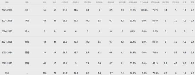本赛季合同年的马威(薪资628万美元),为新东家出战56场首发52次,场均上阵23.6分钟贡献11.6分8.1板(3.1前场板)1助,投篮命中率63.3%。