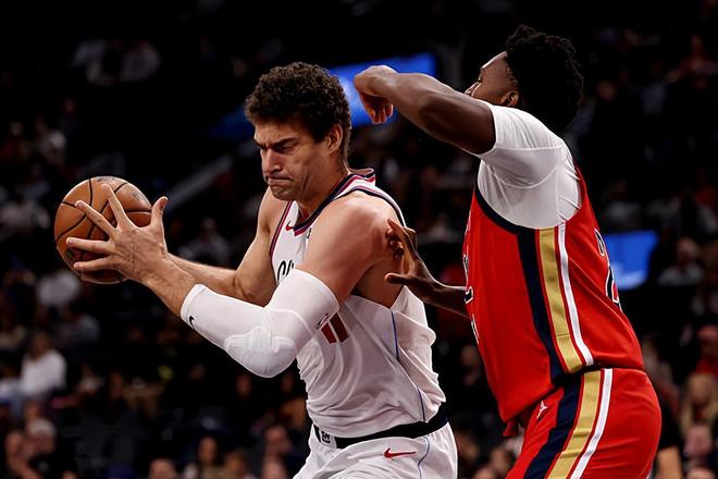 本场比赛中,快船虽然取得了比赛的胜利,但是球队的先发中锋布鲁克-洛佩斯(Brook Lopez)的表现算得上是令人刮目相看。洛佩斯全场出场12分26秒,投篮4中2,三分线外1中0,罚球1中0,得到了4分1篮板的数据,还有1次犯规,正负值为-1。洛佩斯在攻防两端的表现都是非常糟糕的,他在进攻端无法起到基本的作用,得分能力和投射能力都没有办法发挥出来,他在防守端的表现更是惨不忍睹,他在篮板保护方面的问题非常突出,而且他在移动速度方面的短板更是被彻底暴露了出来。很显然,对手也是充分了解了洛佩斯的问题,他们也是不停对洛佩斯进行针对性打击,命中了大量的三分。也是因为表现实在是太糟糕了,快船也是不得不限制了洛佩斯的出场时间。
